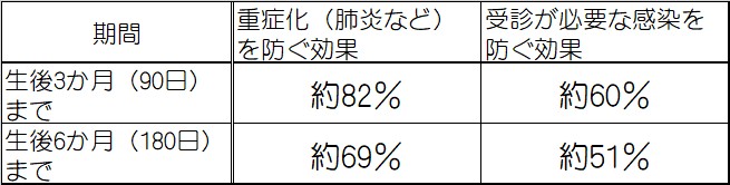 臨床試験や近年のデータでは、生後半年までの赤ちゃんを守る高い効果が確認されています。