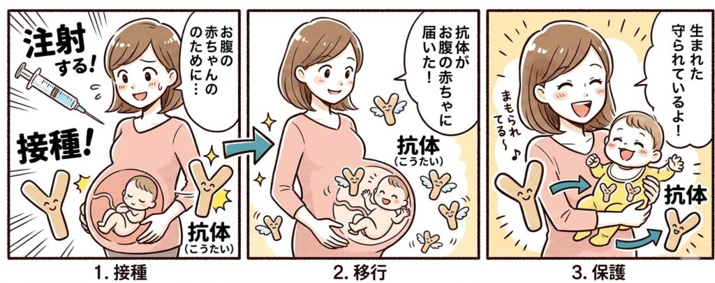 「赤ちゃんに直接注射するのはかわいそう…」と抵抗がある方にとっても、お母さんが受けるだけで守ってあげられるこのワクチンは、非常に心強い味方です。