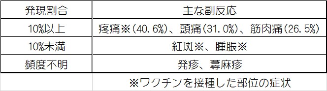 ワクチン接種後に、以下のような副反応がみられることがあります。