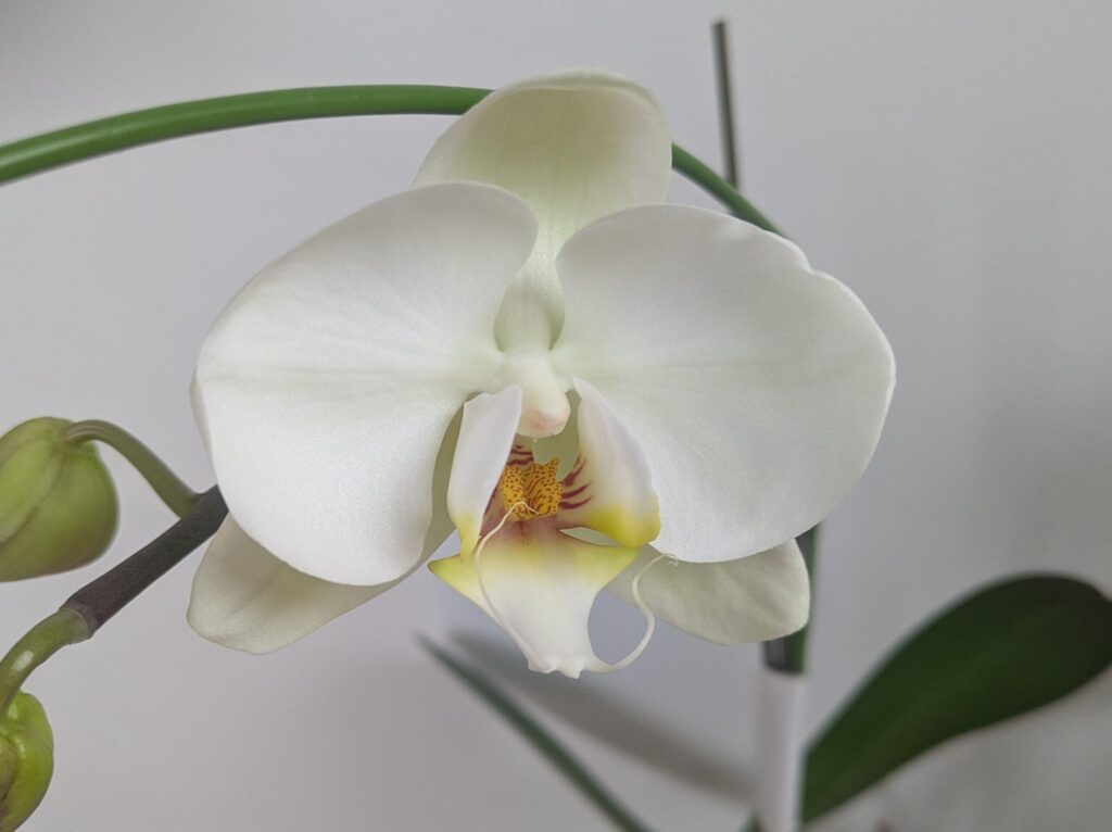 当院には、鉢植えの胡蝶蘭が2株あります。開院1周年の記念にいただいた胡蝶蘭。繊細な花というイメージだったので、すぐに枯れてしまうのだろうと思っていました。花が散った後も葉は元気だったので、処分する気にはなれず、かといってなにも世話をしないのは申し訳なく、週に1度の水やりだけは続けていました。すると翌年の春に花が咲いたのです。驚きでした。